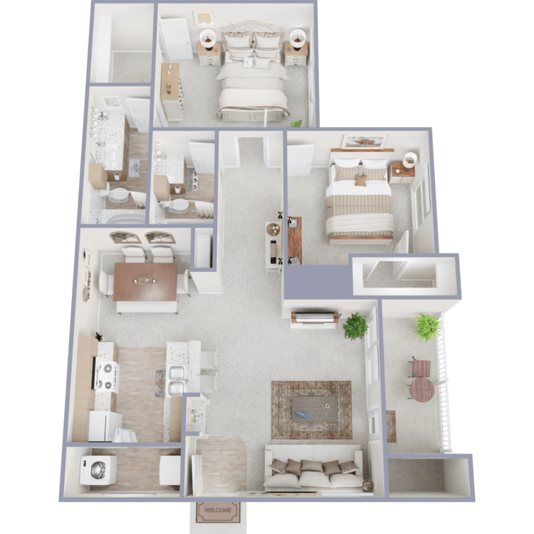 Fountains of Tomball is the ideal place to call home, equipped with unique features you will love. Our pet-friendly two-bedroom apartments for rent will give you the comfort you deserve. Every home features an oversized balcony or patio to unwind. Enjoy the extra touch of sophisticated backsplashes, designer accent walls, a large garden tub, stylish finishes, spacious walk-in closets, and a wood-burning fireplace, which you will find in select homes.